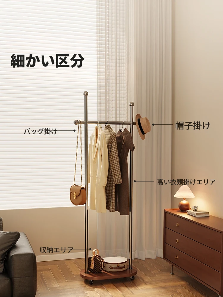 おしゃれな木製スタンドハンガー - 室内用の衣服掛け。玄関やリビングに最適!ベッドサイドに置けば、夜の衣服もスッキリ!お部屋を美しく整頓して、快適な生活空間を実現します。