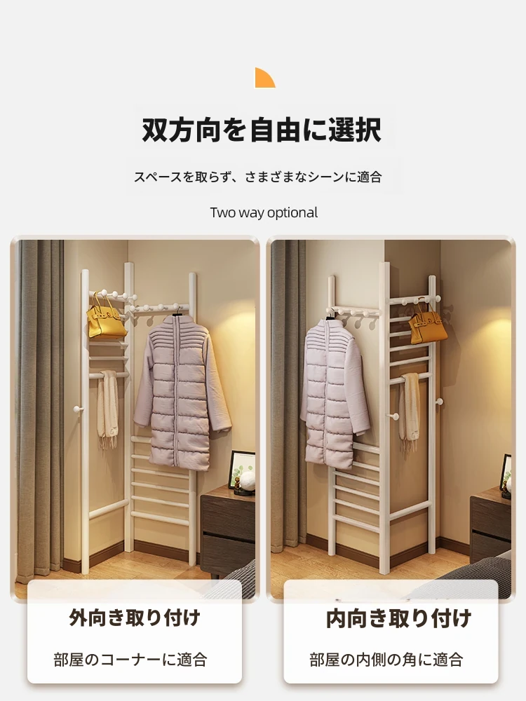 省スペースで多機能!金属製の立て掛け式衣類ハンガー - 寝室やリビングに最適!ベッドサイドにぴったりの衣服・小物収納ラック!あなたのスタイルを引き立てるおしゃれなアイテム!