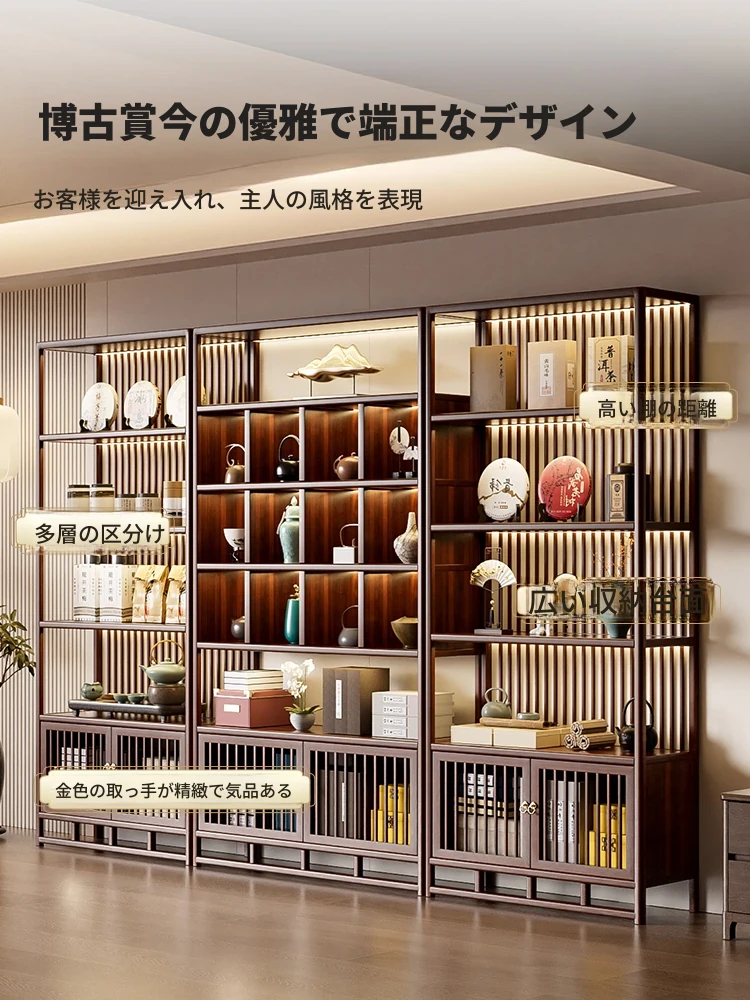 実木製中華茶具ラック - おしゃれなティーセット&茶葉収納に最適!多宝阁スタイルのディスプレイキャビネット、茶室やリビングにぴったりの茶器棚。美しいデザインで、あなたの茶の時間を特別に演出します。
