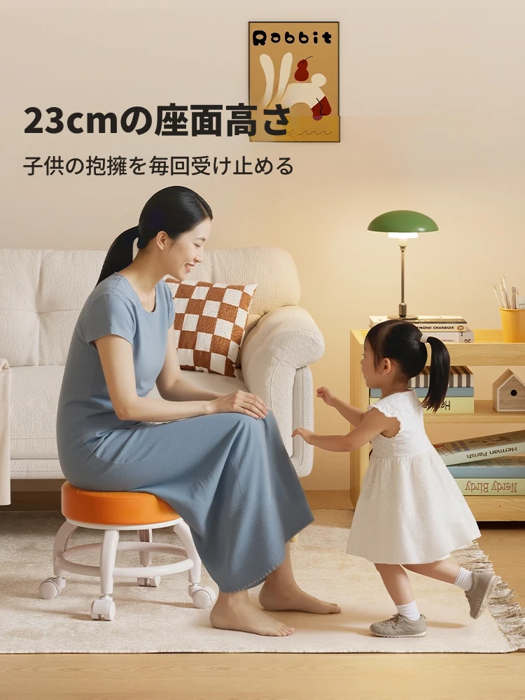 家庭用の軽量で頑丈な小さなスツール - 移動も簡単!お子様と一緒に使えるソファサイドの必需品。長時間座っても疲れない、360度回転するウィール付きの便利なスツールです。