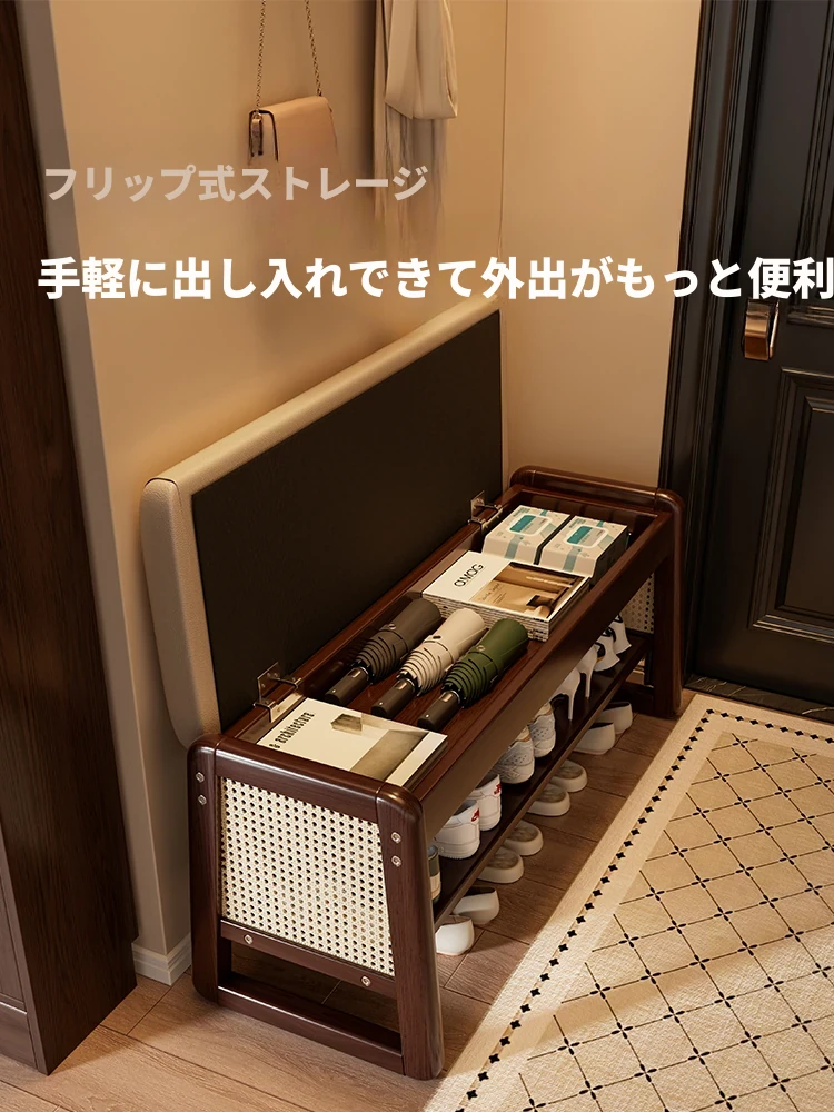 玄関用スリムシューズベンチ - スタイリッシュな収納付きシューズラックで、狭いスペースにもぴったり!座って靴を履くのに最適。おしゃれなデザインで、家の入口をスマートに演出します。