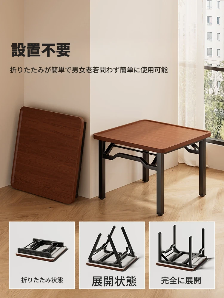 折りたたみ式の小型正方形テーブル - 家庭用、狭いスペースにも最適!食事やカードゲーム、勉強にピッタリな移動可能なテーブル。スマートなデザインでお部屋をスッキリ!